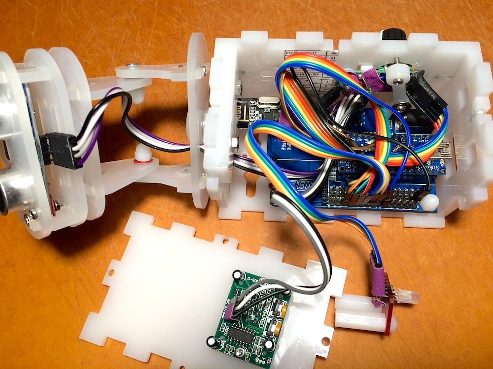 The template files inside the enclosure folder of the project contain designs for the boxes, as well as the arm. Feel free to use them. By laser-cutting these parts, you too can assemble BORAT boxes and the sonar arm.